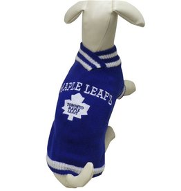 V neck sweaters are oh so stylish! Now they are even more stylish thanks to hockey. Your pup will strut around showing off their team spirit for everyone to see. Bold accents on this double weave acrylic fabric make it a must have for the hockey season!